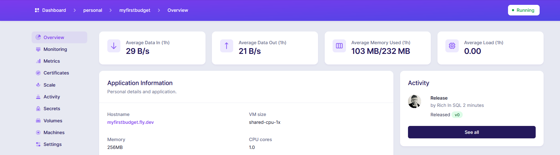 If you forget the URL, you can always find it by opening https://fly.io/dashboard in a browser. Click on the application you created: