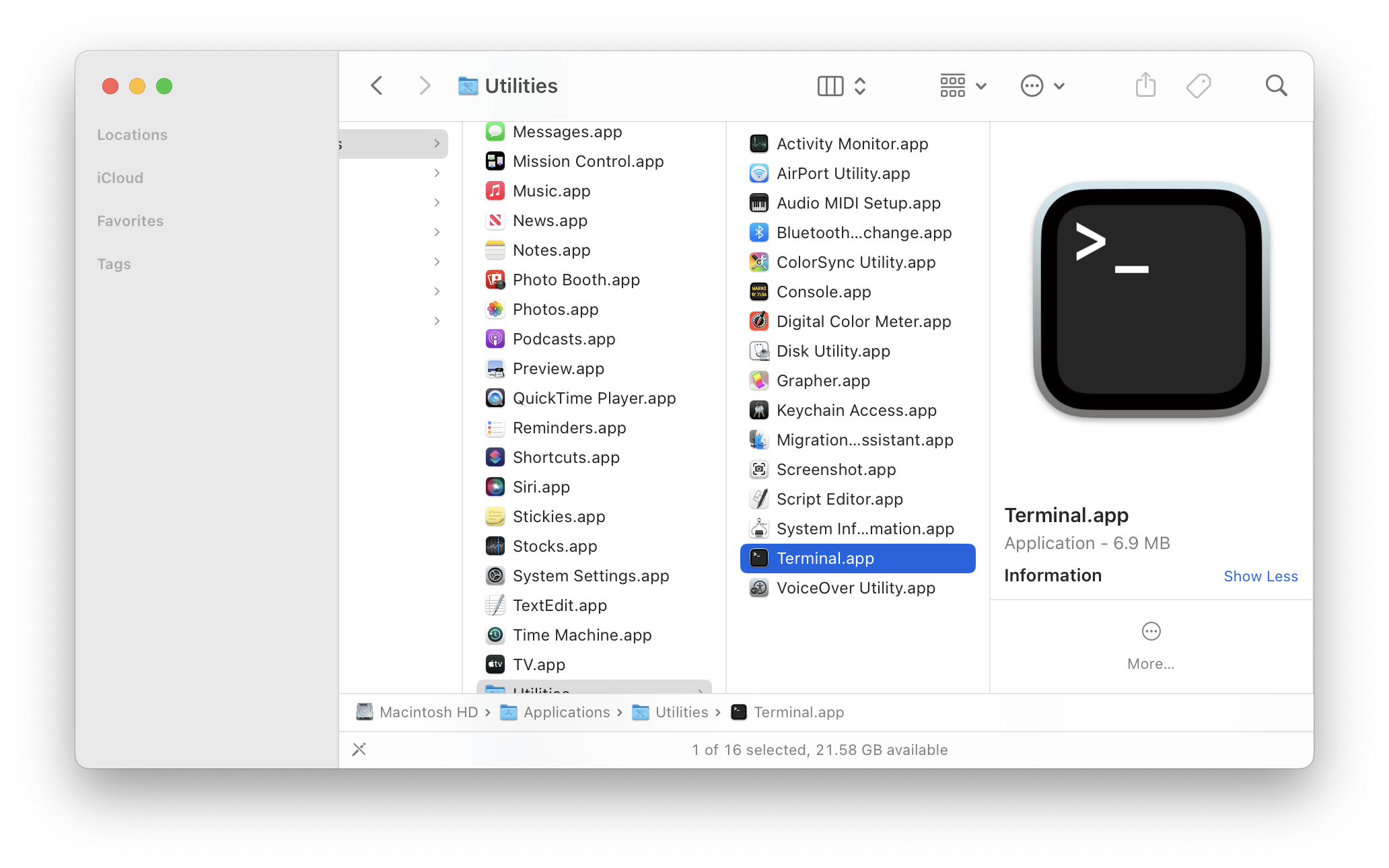 Scroll down in the list until you find “Terminal.” Double-click on it to open it.